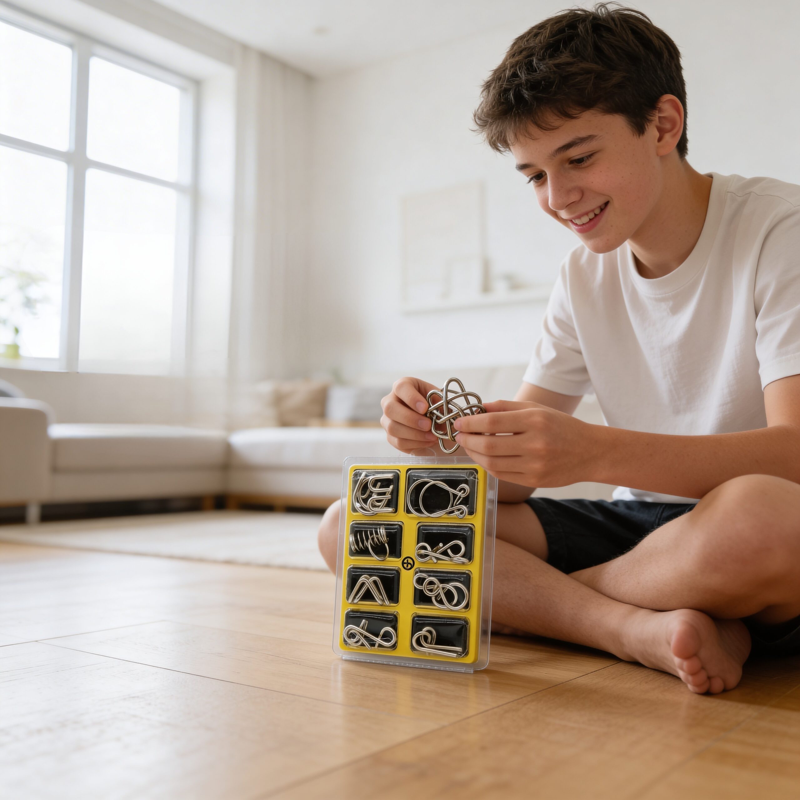Mind Lock to zestaw 8 łamigłówek logicznych, które wspierają rozwój koncentracji, cierpliwości i umiejętności rozwiązywania problemów.